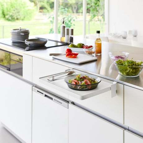 Auxiliary shelf that can be installed on the sink cabinet door.